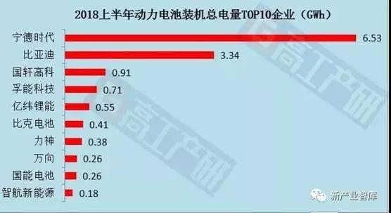 高工產(chǎn)業(yè)研究院(GGII)發(fā)布數(shù)據(jù)顯示,2018年上半年動(dòng)力電池裝機(jī)總電量約15.54GWh,同比增長(zhǎng)168%。其中,裝機(jī)總電量TOP10企業(yè)合計(jì)達(dá)13.53GWh,占整體的87%,較去年同期占比上升近12個(gè)百分點(diǎn),行業(yè)集中度日漸凸顯。