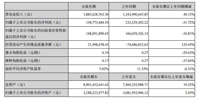 中國(guó)儲(chǔ)能網(wǎng)訊:7月30日晚間,億緯鋰能發(fā)布2018年半年度報(bào)告,公司上半年實(shí)現(xiàn)營(yíng)收18.84億元,同比增長(zhǎng)40.15%,其中鋰離子電池業(yè)務(wù)營(yíng)收12.69億元,同比增長(zhǎng)219.60%,成為最大業(yè)務(wù)板塊;凈利潤(rùn)1.59億元,同比下降31.72%,但扣除去年同期轉(zhuǎn)讓麥克韋爾控股權(quán)的處置收益1.22億元,凈利潤(rùn)則同比增長(zhǎng)44.23 %。