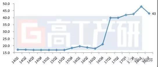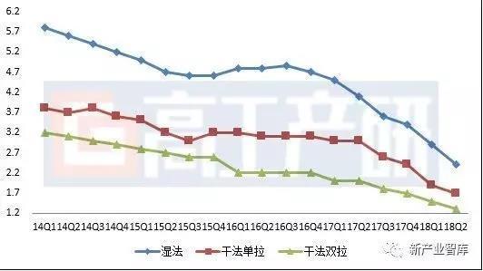 2015Q1-2018Q2中國(guó)鋰電池隔膜均價(jià)(元/平米)