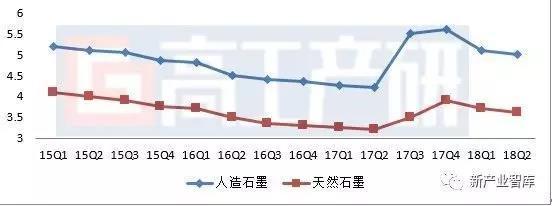 2015Q1-2018Q2中國(guó)常規(guī)負(fù)極材料均價(jià)走勢(shì)(萬(wàn)元/噸)