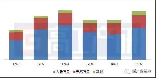 2017Q1-2018Q2年中國(guó)負(fù)極材料出貨量(噸)