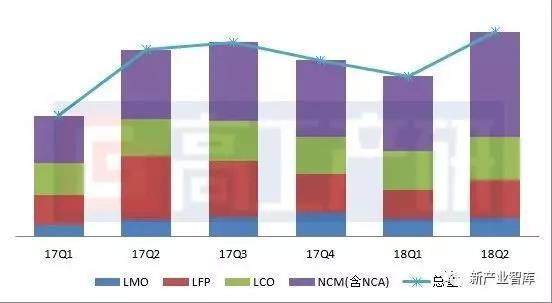 2017Q1-2018Q2中國(guó)正極材料出貨量分析(噸)