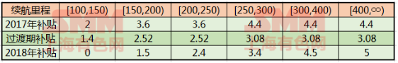 續(xù)航里程單位km 補(bǔ)貼單位萬元