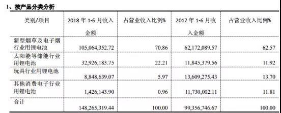 豐江電池表示,公司2018上半年營業(yè)收入增長主要原因是“新型煙草和電子煙行業(yè)用鋰電池”的業(yè)績增長,報告期內(nèi),該部本分銷售額1.05億元,較上年同期增長68.99%,占營業(yè)收入比例70.86%。以及利息收入和其它收入增加,應收賬款減少等。