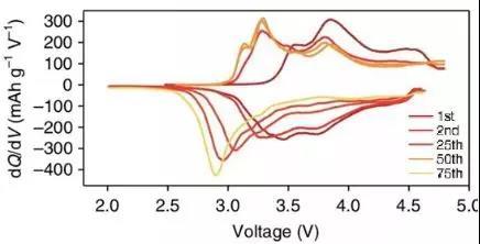 在電化學(xué)反應(yīng)過程中伴隨著氧氣的釋放,會帶來安全性問題;氧氣釋放和循環(huán)過程中過渡金屬離子平均價態(tài)持續(xù)降低是導(dǎo)致電壓衰減的根源;這又會牽涉到我們下一個要談到的更重要的問題。釋氧問題,從材料的角度而言小編相信是可以得到解決的。