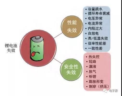 為了避免上述出現(xiàn)的性能衰減和電池安全問(wèn)題,開(kāi)展鋰電池失效分析勢(shì)在必行。鋰電池的失效是指由某些特定的本質(zhì)原因?qū)е码姵匦阅芩p或使用性能異常,分為性能失效和安全性失效。