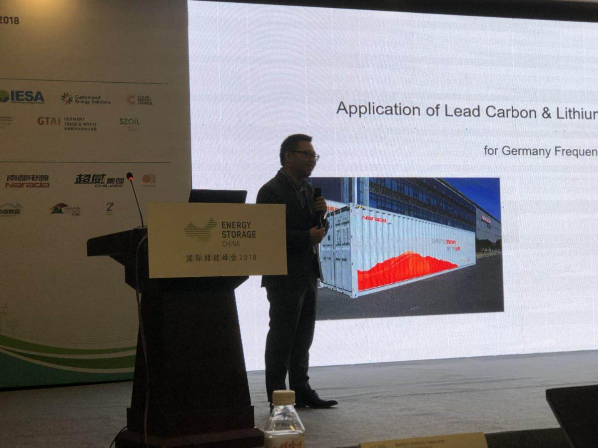 南都電源產(chǎn)品部總監(jiān)項(xiàng)海峰分享了鉛炭及磷酸鐵鋰電池儲能系統(tǒng)在德國調(diào)頻的應(yīng)用。