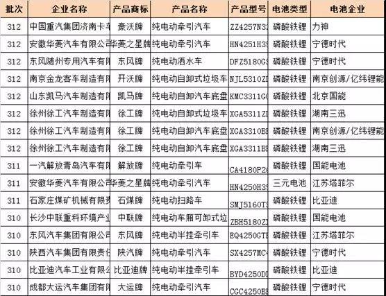 實際上,從近三批工信部公示的《道路機動車輛生產(chǎn)企業(yè)及產(chǎn)品公告》來看,純電動重卡(總質(zhì)量在14噸以上)入圍的數(shù)量在不斷增多。共有16款車型入圍,其中,312批入圍車型數(shù)量最多,達(dá)到8款。