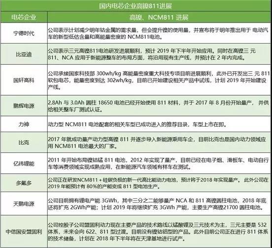 國內(nèi)電芯企業(yè)高鎳 811進展