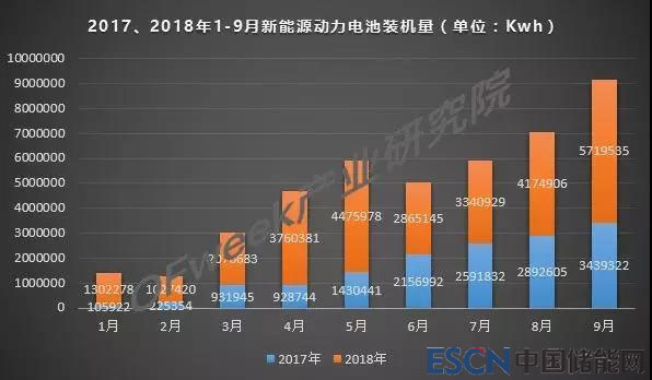 OFweek產(chǎn)業(yè)研究院分析數(shù)據(jù)顯示,2018年9月,我國新能源汽車動力電池裝機量約5.72Gwh,環(huán)比增長36.99%,增長速度為5月以來最高,同比增長66.30%,2018年1-9月累計裝機量約為28.74Gwh。