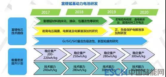 對于富鋰電芯技術路線的突破走向以及能量密度提升計劃,遨優(yōu)動力也做出了詳細的規(guī)劃,如下圖: