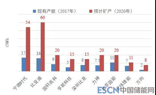 國(guó)內(nèi)主流動(dòng)力電池企業(yè)的擴(kuò)產(chǎn)計(jì)劃