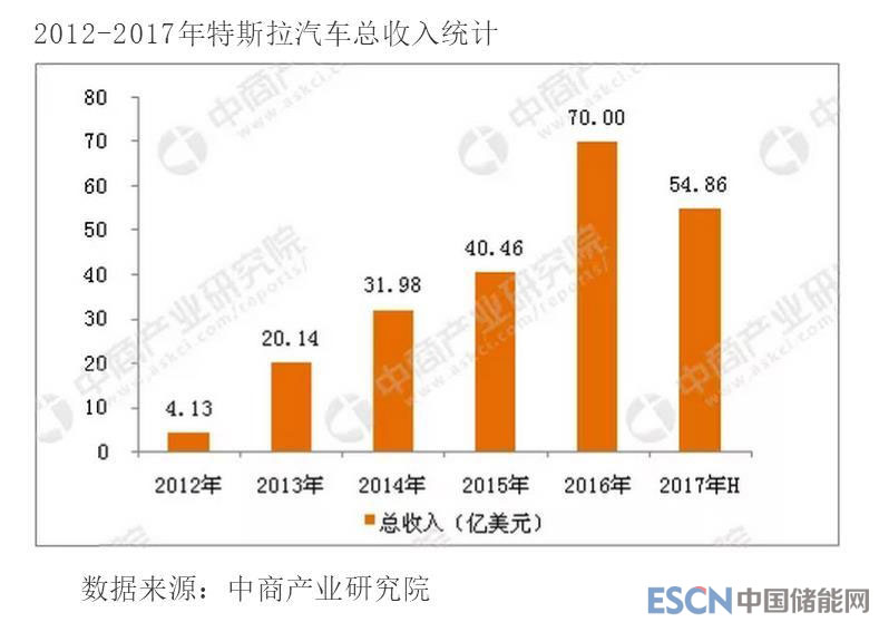 2017年上半年,特斯拉公司總收入54.86億美元。