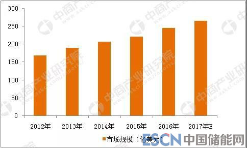 2012-2017年全球鋰電池市場(chǎng)規(guī)模情況