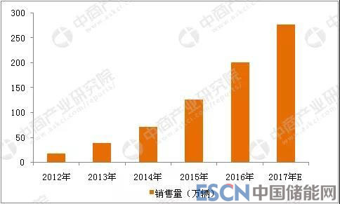 2012-2017年全球電動(dòng)汽車(chē)銷(xiāo)售量