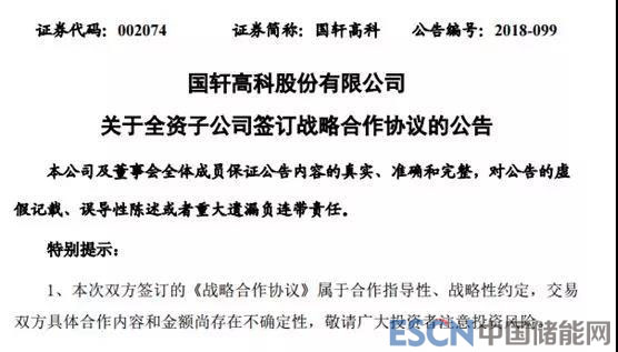 中國儲能網(wǎng)訊:今日,國軒高科發(fā)布公告稱,國軒高科股份有限公司(以下簡稱“公司”)全資子公司合肥國軒高科動力能源有限公司(以下簡稱“合肥國軒”或“乙方”)與安徽江淮汽車集團股份有限公司(以下簡稱“江淮汽車”或“甲方”)在山東省青島市就共同推進無補貼時代新能源汽車市場化達成戰(zhàn)略合作協(xié)議,并于2018年10月23日簽署了《戰(zhàn)略合作協(xié)議》(以下簡稱“戰(zhàn)略協(xié)議”)