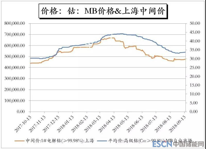 圖2.近一年電解鈷及高級(jí)鈷價(jià)格走勢(shì)