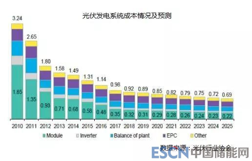 光伏行業(yè)協(xié)會統(tǒng)計顯示,2007~2017年,中國光伏行業(yè)發(fā)電度電成本累計降幅約90%。