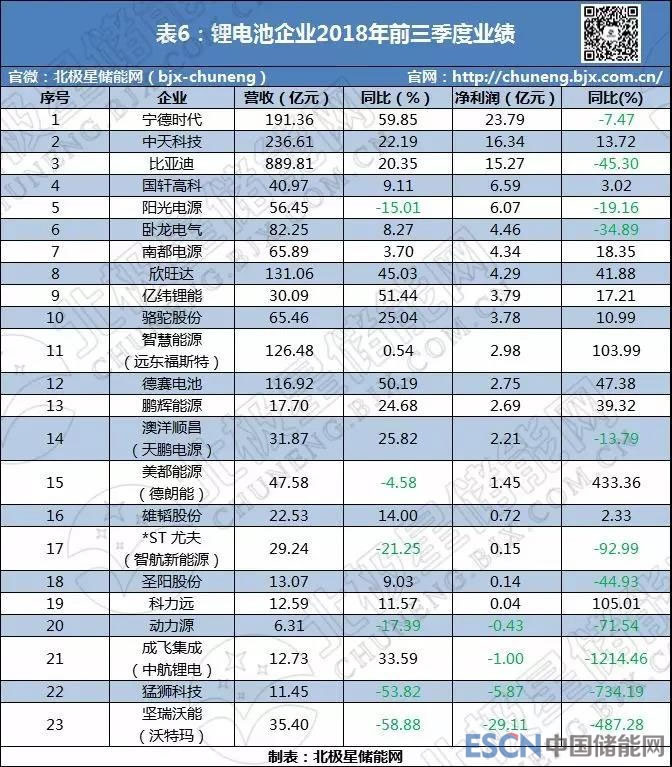中國儲能網(wǎng)訊:2018年以來,中國儲能產(chǎn)業(yè)快速發(fā)展,電網(wǎng)側(cè)、用戶側(cè)等多個大型儲能項目相繼落地,儲能市場迎來了爆發(fā)期。然而,受新能源汽車補貼下滑、競爭環(huán)境惡化等因素影響,儲能領(lǐng)域上市企業(yè)前三季度業(yè)績并不是十分理想,整體盈利水平偏低、兩極分化嚴重等現(xiàn)象愈趨明顯。