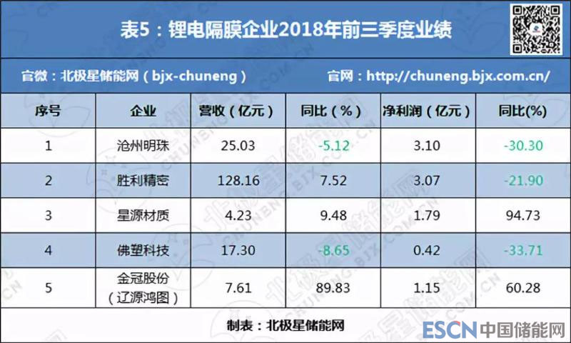 前三季度,鋰電隔膜企業(yè)凈利潤也普遍飄紅,但僅星源材質(zhì)和金冠股份出現(xiàn)正增長,其中星源材質(zhì)凈利潤增幅超過了9成,龍頭地位進一步鞏固(詳見表5)。關(guān)于業(yè)績增長原因,星源材質(zhì)表示,公司首次公開發(fā)行股票的募集資金投資項目“第三代高性能動力鋰電隔膜生產(chǎn)線擴建項目”中的一條干法隔膜生產(chǎn)線所貢獻的產(chǎn)能,以及公司控股子公司合肥星源新能源材料有限公司濕法隔膜產(chǎn)能的逐步釋放,使得公司前三季度干、濕法隔膜產(chǎn)品累計銷售量較上年同期有所增長。