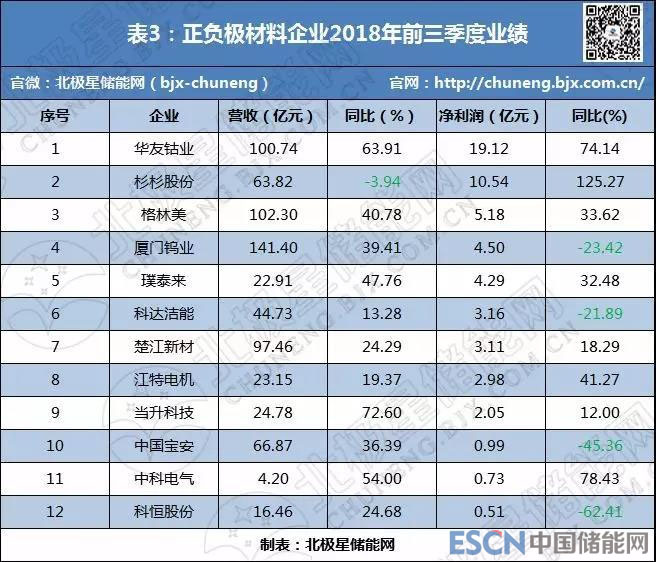 在業(yè)績?yōu)橥醯馁惖郎?,“叢林法則”是唯一的競爭邏輯,有人稱霸,自有人隕落。北極星儲能網(wǎng)通過對鋰電池、鋰電材料、鋰電設(shè)備等60家儲能領(lǐng)域上市企業(yè)前三季度業(yè)績統(tǒng)計發(fā)現(xiàn),近9成企業(yè)業(yè)績飄紅,僅8家出現(xiàn)虧損,其中寧德時代、華友鈷業(yè)、天齊鋰業(yè)分別以23.79億元、19.12億元和16.89億元的凈利潤奪得前三甲,而堅瑞沃能受沃特瑪債務(wù)危機拖累則巨虧29.11億元,成為名副其實的“虧損王”。但值得注意的是,這60家企業(yè)中凈利潤增速超過50%的僅有10家,而凈利潤下滑的企業(yè)卻多達近半數(shù)(詳見表1)。
