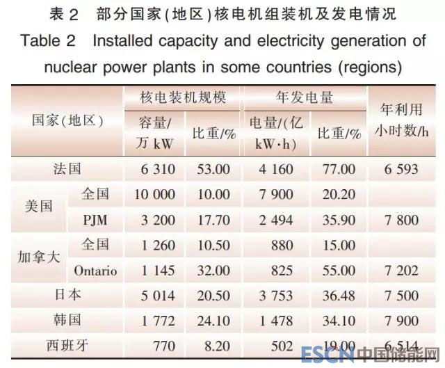 根據(jù)調(diào)研,法國(guó)、美國(guó)PJM、加拿大Ontario、日本、韓國(guó)等國(guó)家和地區(qū)的核電裝機(jī)占比均接近或超過20%(詳見表2),發(fā)電量占比在20%~80%。其中,法國(guó)核電裝機(jī)占比超過50%,發(fā)電量占比超過70%,機(jī)組頻繁進(jìn)行日調(diào)峰運(yùn)行;美國(guó)、德國(guó)核電機(jī)組根據(jù)電網(wǎng)需求參與調(diào)峰運(yùn)行;日本、西班牙、韓國(guó)等國(guó)家和地區(qū)由于具有充足的調(diào)峰電源,電源結(jié)構(gòu)適應(yīng)負(fù)荷特性要求,除在最小負(fù)荷時(shí)段安排檢修外,核電機(jī)組一般保持滿功率運(yùn)行。