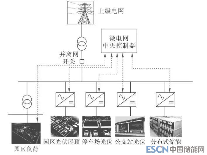 圖1產(chǎn)業(yè)園區(qū)典型光儲微電網(wǎng)系統(tǒng)的形態(tài)示意圖