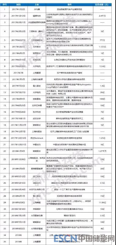 本文匯總了2017~2018年中國氫燃料電池產(chǎn)業(yè)鏈的相關(guān)投資,累計(jì)投資金額2193.16億元。其中氫燃料電池汽車相關(guān)投資額,約有1052億元,占總投資額的一半。