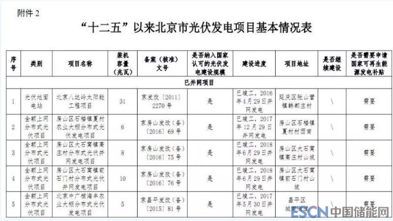 中國(guó)儲(chǔ)能網(wǎng)訊:11月2日,北京市發(fā)改委發(fā)布《關(guān)于公示北京市“十二五”以來(lái)風(fēng)電、光伏發(fā)電項(xiàng)目有關(guān)情況的通知》。