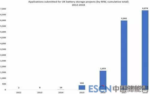 中國儲能網(wǎng)訊:根據(jù)RenewableUK 11月6日發(fā)布的報告,英國2018年電池儲能項目的申請已飆升至6874兆瓦,而2012年僅為2兆瓦。
