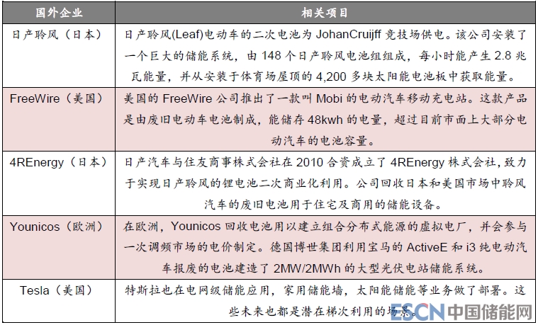 國外梯次利用項目:
