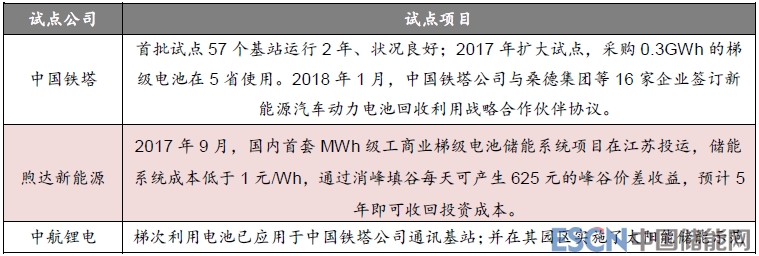 國內(nèi)梯次利用的試點項目: