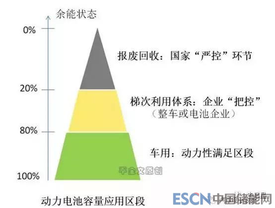 動力電池平均使用年限為5-8年,其性能隨著充電次數(shù)的增加而衰減,當(dāng)電池容量衰減至額定容量的80%以下,動力電池不再適用于電動汽車。但退役的電池經(jīng)過檢測、維護(hù)、重組等環(huán)節(jié),仍可進(jìn)一步在儲能、分布式光伏發(fā)電、家庭用電、低速電動車等諸多領(lǐng)域進(jìn)行梯次利用。
