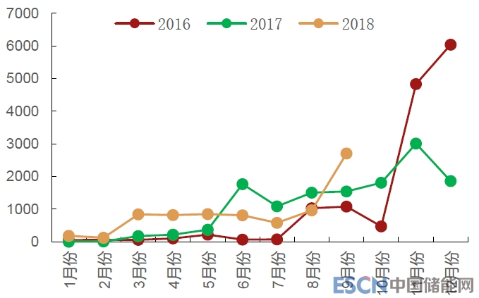 2016-2018年新能源商用車月度銷量:
