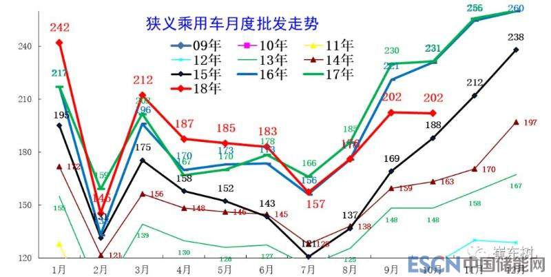 中國(guó)儲(chǔ)能網(wǎng)訊:18年10月狹義乘用車零售195萬(wàn)臺(tái),同比2017年10月下降13.2%,環(huán)比9月增長(zhǎng)2%。今年10月環(huán)比增長(zhǎng)的走勢(shì)延續(xù)了過去三年的銀九金十的規(guī)律,但并非簡(jiǎn)單消費(fèi)拉動(dòng)。歷來(lái)9月購(gòu)車換車迎接國(guó)慶出游較明顯,過去兩年的購(gòu)置稅優(yōu)惠政策的退出效應(yīng)推動(dòng)年末銷量逐步加速走高。因?yàn)楦呋鶖?shù)壓力較大,今年10月的周度批零銷量走勢(shì)頑強(qiáng)拉升。