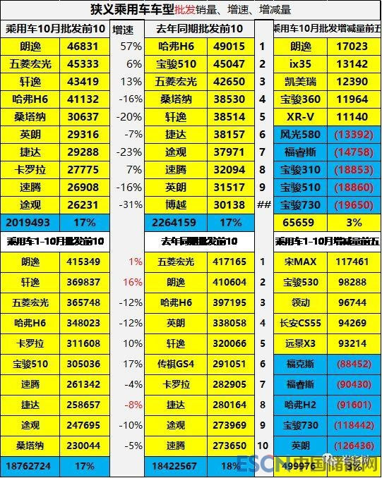 10月轎車主力品牌的批發(fā)表現(xiàn)相對(duì)不強(qiáng),前十位品牌占比17%,較去年的19%下降2個(gè)百分點(diǎn)。10月日系品牌表現(xiàn)優(yōu)秀。10月增量較強(qiáng)的品牌是,前期低基數(shù)的車型。其中表現(xiàn)相對(duì)優(yōu)秀的是寶駿\帕薩特、吉利遠(yuǎn)景、比亞迪等,和部分合資品牌。