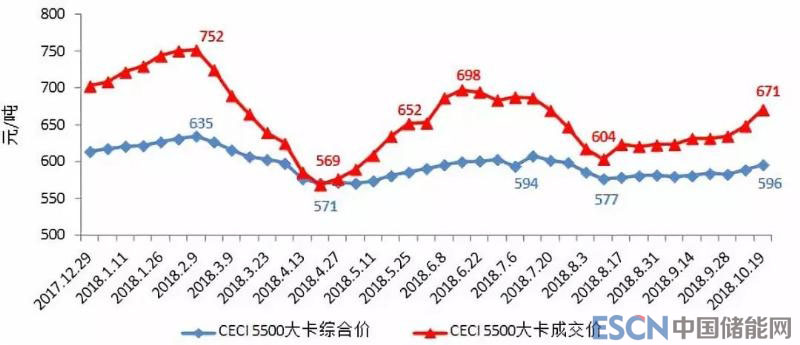 中電聯(lián)發(fā)布的《2018年前三季度全國(guó)電力供需形勢(shì)分析預(yù)測(cè)報(bào)告》顯示:前三季度,電煤價(jià)格總體處于高位波動(dòng)態(tài)勢(shì),根據(jù)中國(guó)沿海電煤采購(gòu)價(jià)格指數(shù)——CECI沿海指數(shù)顯示,反映電煤采購(gòu)綜合成本的CECI5500大卡綜合價(jià)前三季度波動(dòng)區(qū)間為571-635元/噸,各期價(jià)格都超過(guò)了《關(guān)于平抑煤炭市場(chǎng)價(jià)格異常波動(dòng)的備忘錄》中規(guī)定的綠色區(qū)間上限,國(guó)內(nèi)煤價(jià)持續(xù)高位也導(dǎo)致對(duì)標(biāo)國(guó)內(nèi)煤價(jià)的進(jìn)口煤價(jià)格快速上漲,明顯提高了國(guó)內(nèi)企業(yè)采購(gòu)成本。