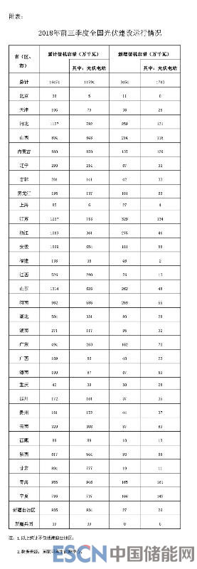 全國各?。▍^(qū)、市)2018年前三季度光伏建設(shè)運行情況詳見附表。