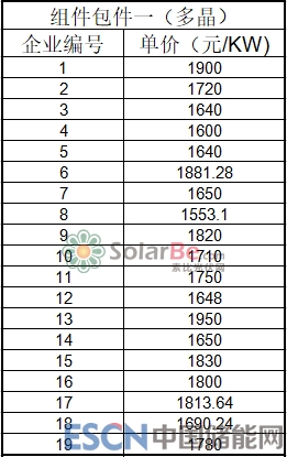 從投標(biāo)價(jià)格來(lái)看,多晶組件最低價(jià)1553.10元/KW,最高價(jià)1980元/KW,平均為1738.224元/KW;單晶組件最低價(jià)1583.16元/KW,最高價(jià)1950元/KW,平均為1729.693元/KW。