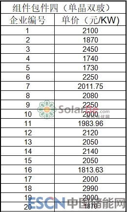 對(duì)雙玻組件而言,多晶最低價(jià)只要1718元/KW,最高價(jià)2200元/KW,平均為1955.377元/KW。單晶組件,兩家企業(yè)報(bào)出了1730元/KW的最低價(jià),最高價(jià)則達(dá)到2450元/KW,平均為1991.821元/KW。總體來(lái)看,雙玻組件價(jià)格比普通組件高0.2-0.4元/KW。