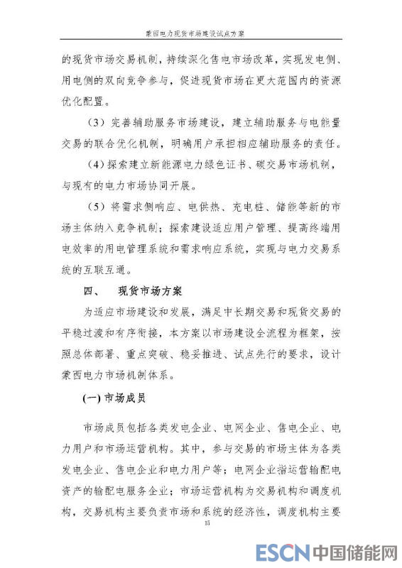 中國(guó)儲(chǔ)能網(wǎng)訊:11月26日,內(nèi)蒙古自治區(qū)經(jīng)信委發(fā)布了關(guān)于《蒙西電力現(xiàn)貨市場(chǎng)建設(shè)試點(diǎn)方案(征求意見稿)》(以下簡(jiǎn)稱《方案》)公開向社會(huì)征求意見?!斗桨浮繁硎荆晌鳜F(xiàn)貨市場(chǎng)建設(shè)立足于內(nèi)蒙古電力多邊交易市場(chǎng)多年穩(wěn)步發(fā)展的堅(jiān)實(shí)基礎(chǔ),著力于解決市場(chǎng)深化發(fā)展面臨的突出問題,構(gòu)建中長(zhǎng)期交易、現(xiàn)貨交易協(xié)調(diào)運(yùn)作的總體框架,完善日前現(xiàn)貨市場(chǎng)交易機(jī)制、輔助服務(wù)市場(chǎng)機(jī)制,適時(shí)建立日內(nèi)市場(chǎng),最終建成共享共贏的市場(chǎng)體系。