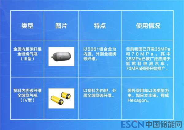 車用高壓氣態(tài)儲(chǔ)氫主要應(yīng)用于車載系統(tǒng),大多使用金屬內(nèi)膽碳纖維全纏繞氣瓶(III型)和塑料內(nèi)膽碳纖維全纏繞氣瓶(IV型)。當(dāng)前,國(guó)內(nèi)車載系統(tǒng)中主要以III型瓶為主,國(guó)內(nèi)有北京科泰克、北京天海、沈陽斯林達(dá)、中材、富瑞特裝等多家車用氫瓶生產(chǎn)企業(yè)。