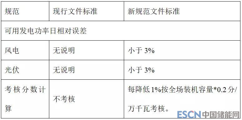 風(fēng)電場、光伏電站應(yīng)按照國家相關(guān)規(guī)定,具備風(fēng)電或光伏功率預(yù)測功能,不具備此功能者,需限期整改,逾期未完成整改者按每月考核。新舊版本考核分數(shù)變化如下表1