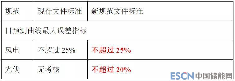 風(fēng)電場、光伏電站應(yīng)按時向電力調(diào)度機構(gòu)報送短期功率預(yù)測曲線,風(fēng)電場提供的日預(yù)測曲線最大誤差不超過25%,光伏電站提供的日預(yù)測曲線最大誤差不超過20%,若未達標(biāo),則按偏差積分電量0.2分/萬千瓦時考核。(風(fēng)電、光伏出力因電網(wǎng)原因受控時段不考核,單日限電時長超過設(shè)定值后全天不考核。)
