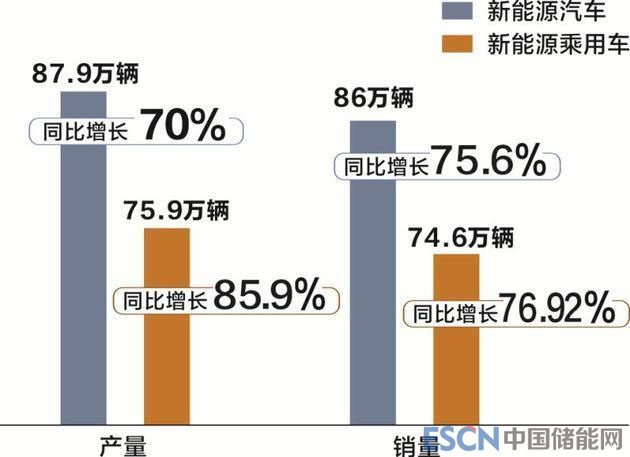 根據(jù)中國汽車工業(yè)協(xié)會數(shù)據(jù)顯示,今年1-10月,我國新能源汽車產(chǎn)銷量分別為87.9萬輛和86萬輛,同比分別增長70%和75.6%。其中,新能源乘用車產(chǎn)銷量分別為75.9萬輛和74.6萬輛,同比分別增長85.9%和76.92%,增長態(tài)勢十分強(qiáng)勁。