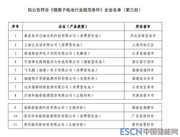 附件:擬公告符合《鋰離子電池行業(yè)規(guī)范條件》企業(yè)名單(第三批)