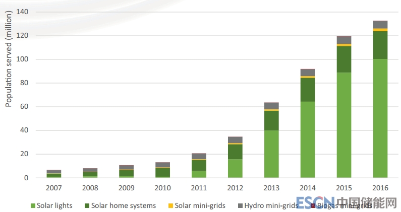 1、2011-2016年間,離網(wǎng)可再生能源所服務(wù)的人數(shù)增加了6倍,達(dá)到近1.33億人