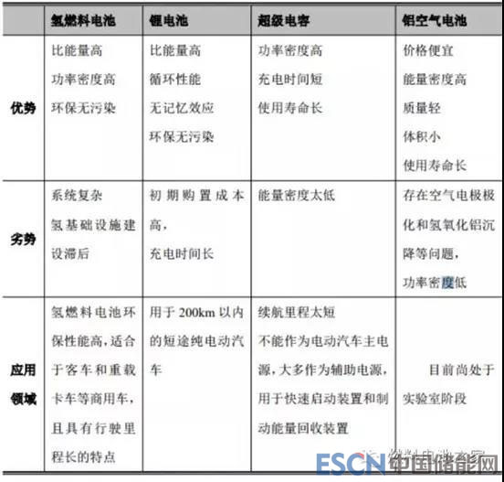 目前在交通運(yùn)輸用動(dòng)力源方面,主要有四種技術(shù)路線:鋰離子電池、氫燃料電池、超級(jí)電容和鋁空氣電池。其中鋰離子電池、超級(jí)電容和氫燃料電池得到廣泛的應(yīng)用,而鋁空氣電池尚處于實(shí)驗(yàn)室研究階段。能源補(bǔ)給方面,鋰離子電池、超級(jí)電容適用于純電動(dòng)汽車,但是需要外部充電,而氫燃料電池汽車則需要外部氫氣加注,鋁空氣電池則需要補(bǔ)充鋁板和電解液。