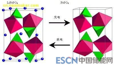 磷酸鐵鋰材料為橄欖石型磷酸鹽類嵌鋰材料,晶體結(jié)構(gòu)穩(wěn)定,充放電過程中不易發(fā)生變形或破壞。同樣,鋰離子反復(fù)的嵌入和脫出只會引起負(fù)極材料的層間距變化,也不會引起材料晶體結(jié)構(gòu)的破壞。鋰離子電池也稱為搖椅式電池。磷酸鐵鋰晶體結(jié)構(gòu)詳見圖2。