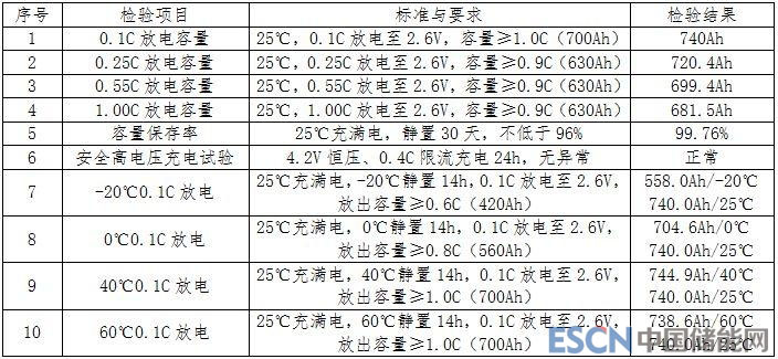 表2 (700Ah)磷酸鐵鋰電池檢驗(yàn)報(bào)告